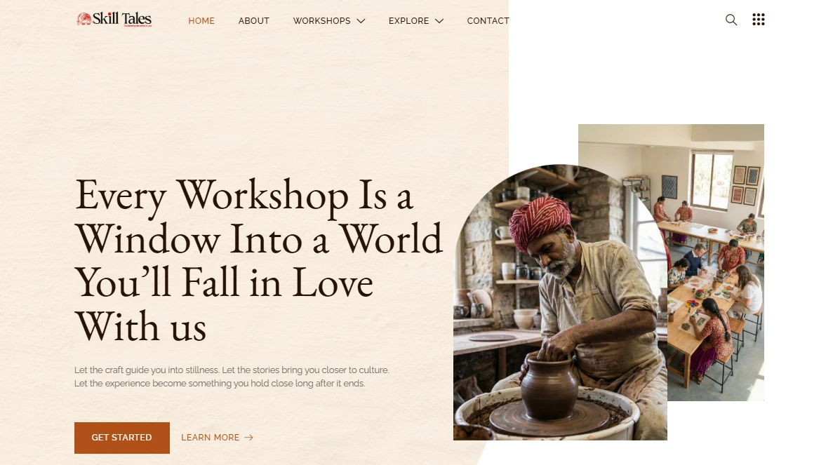 The website was designed to present workshops clearly while reflecting authenticity, craftsmanship, and cultural depth.